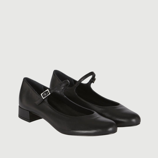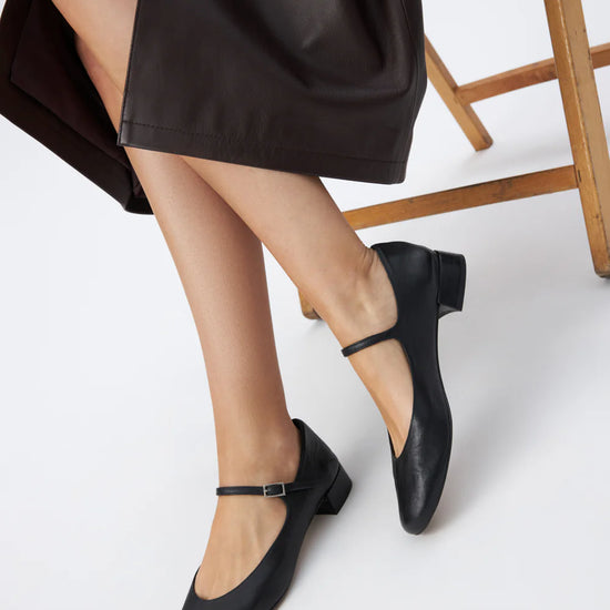 Las Merceditas Emilia Negro reinterpretan el clásico diseño Mary Jane con un acabado elegante y sofisticado.